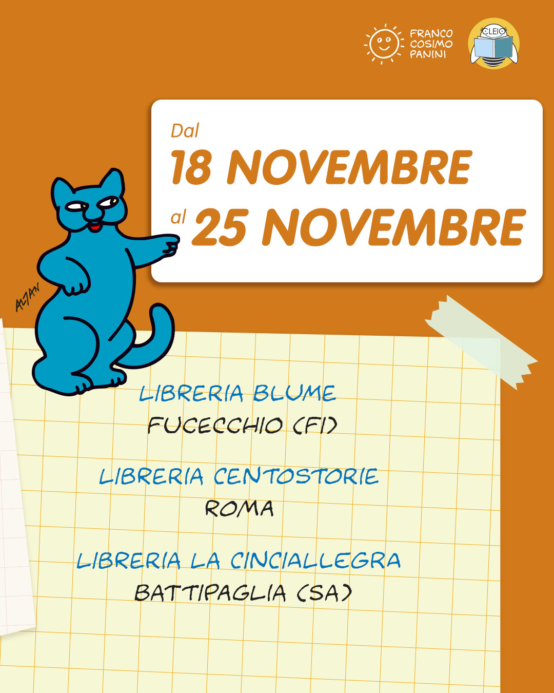 Il tour inizierà il 19 settembre e continuerà fino all'inizio del 2026, di seguito trovate il calendario completo, per i dettagli vi suggeriamo di consultare il sito di Pimpa, i canali social di CLEIO e di ogni libreria.
