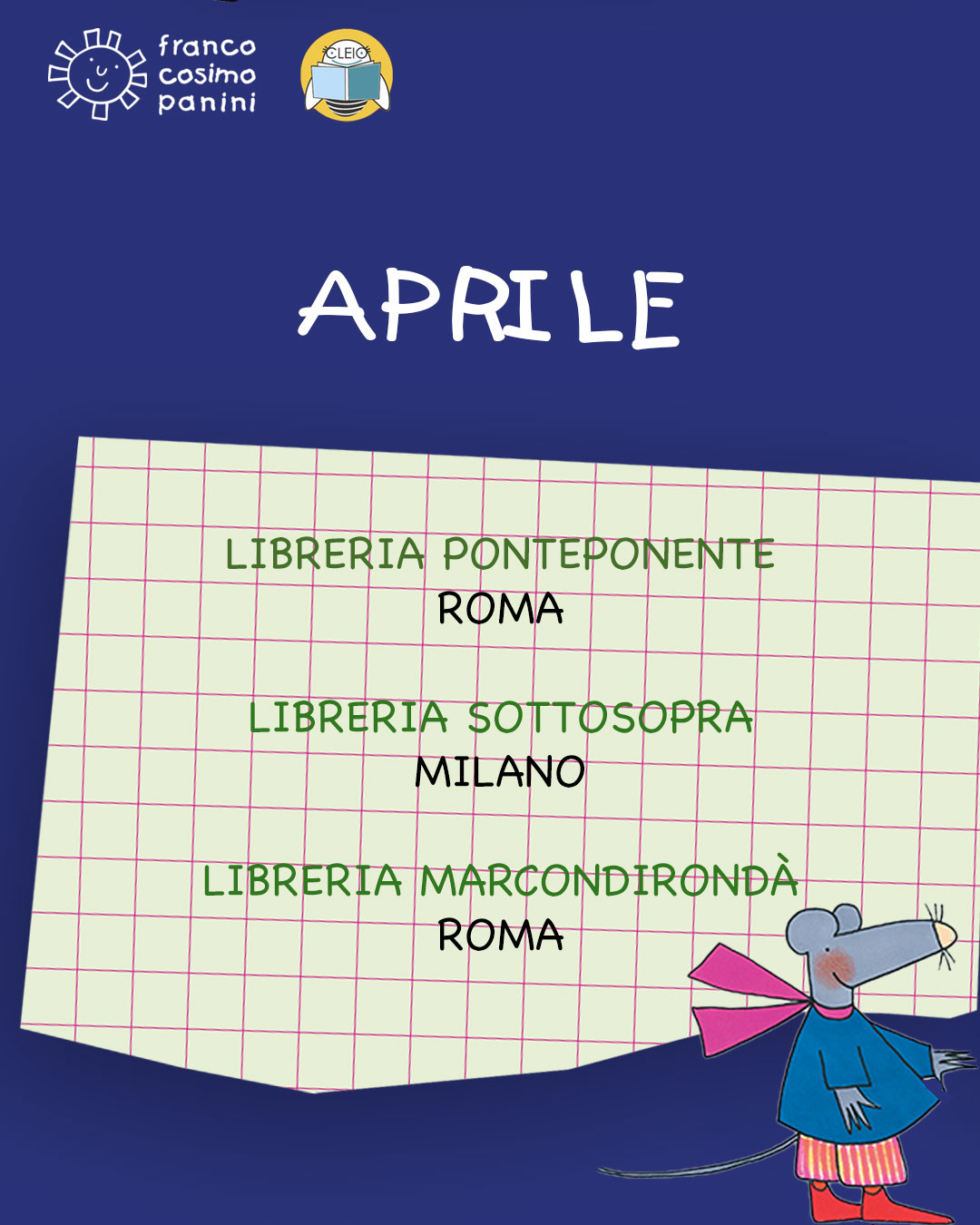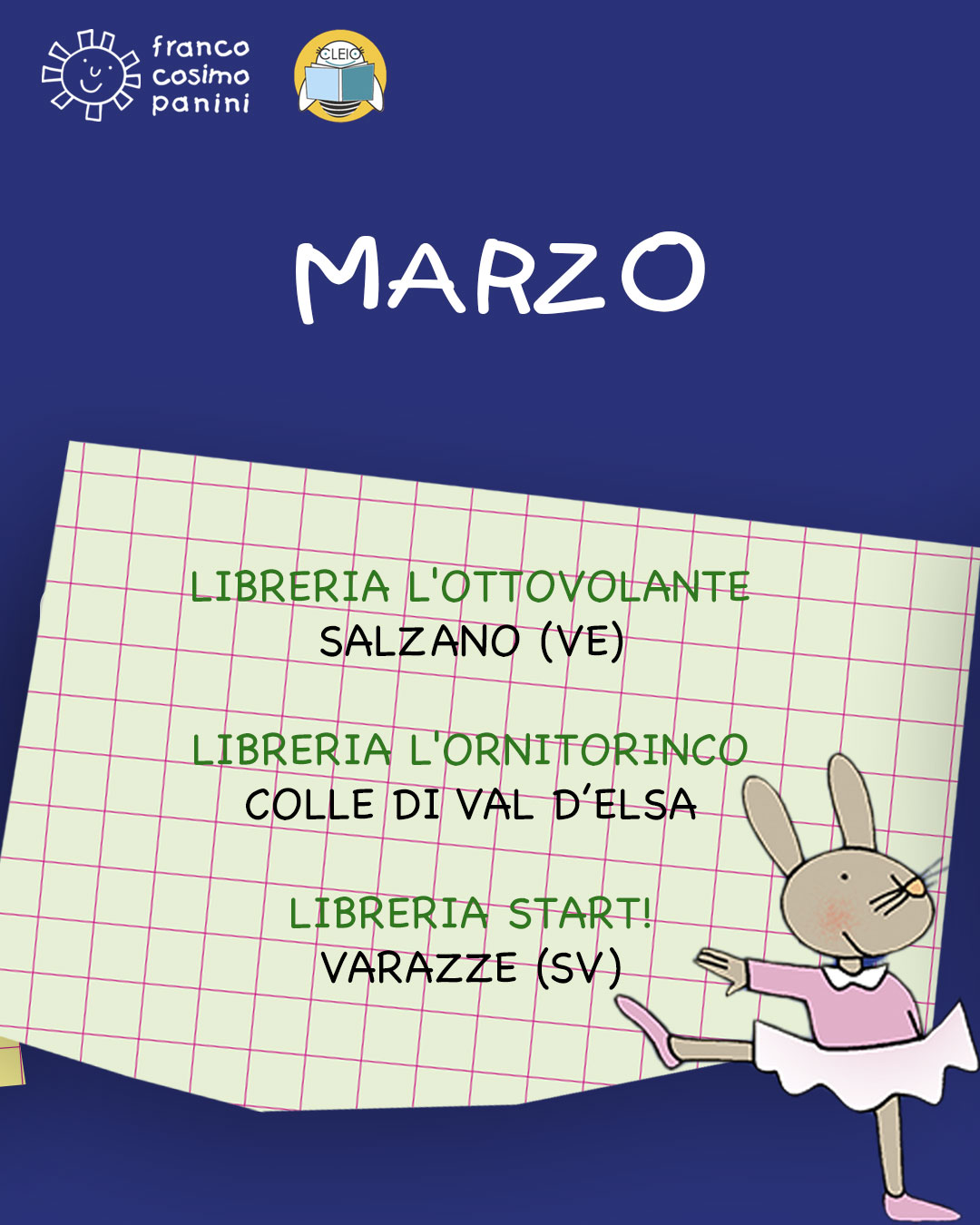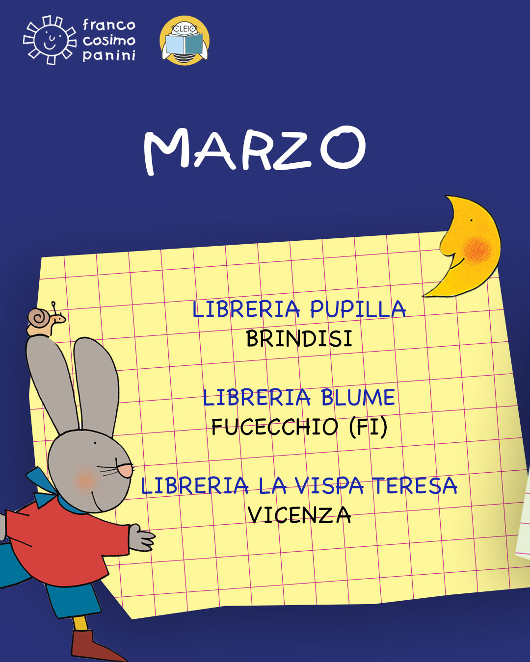A partire da marzo, le librerie Indipendenti Cleio ospiteranno un tour di letture davvero speciale, interamente dedicato alle più belle avventure di Giulio Coniglio, il dolce personaggio nato dalla matita di Nicoletta Costa.