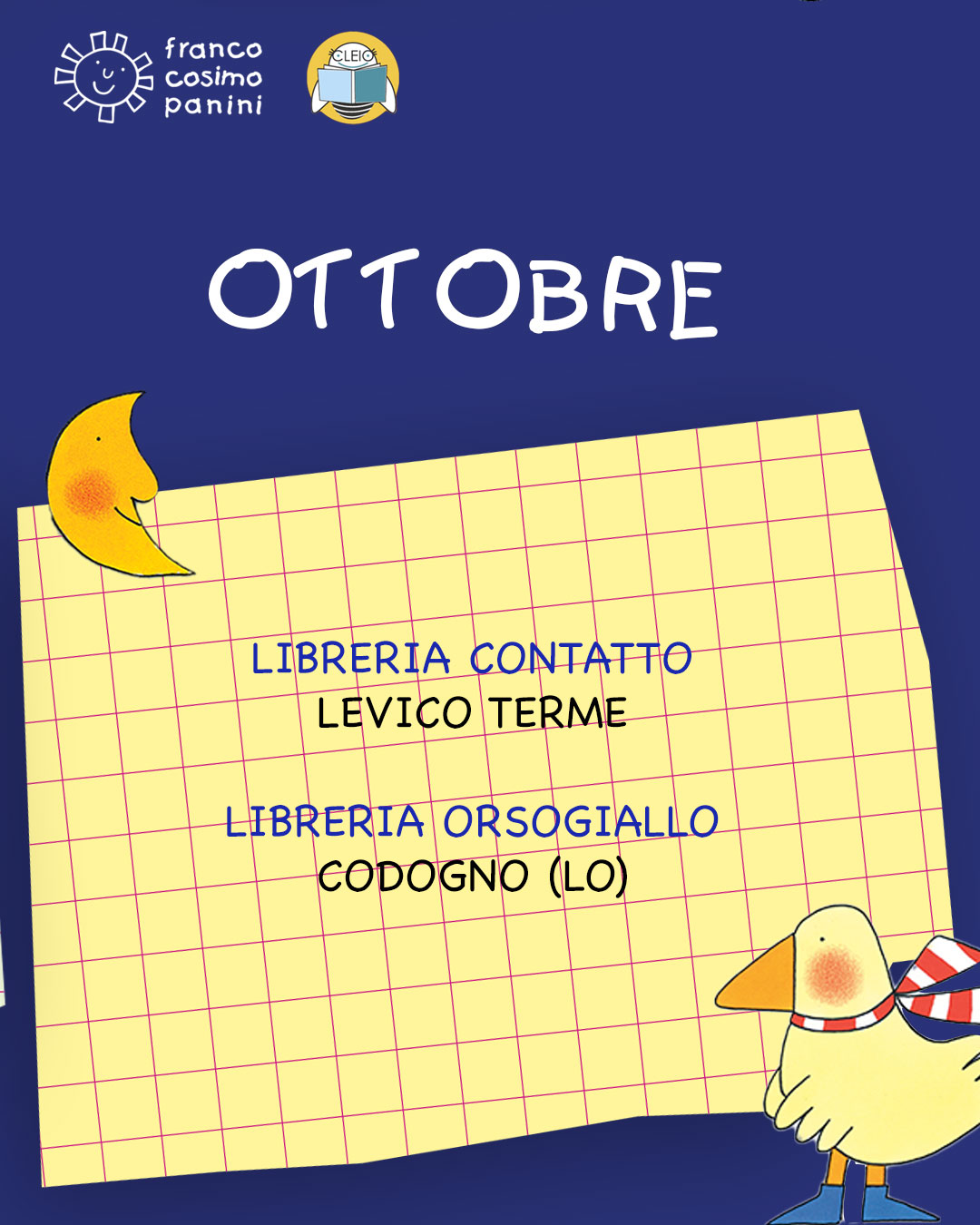 Anche le scuole potranno partecipare acquistando una piccola biblioteca di titoli selezionati dal catalogo Franco Cosimo Panini. In regalo riceveranno La scatola delle feste di Giulio Coniglio, con moltissime attività da fare insieme.